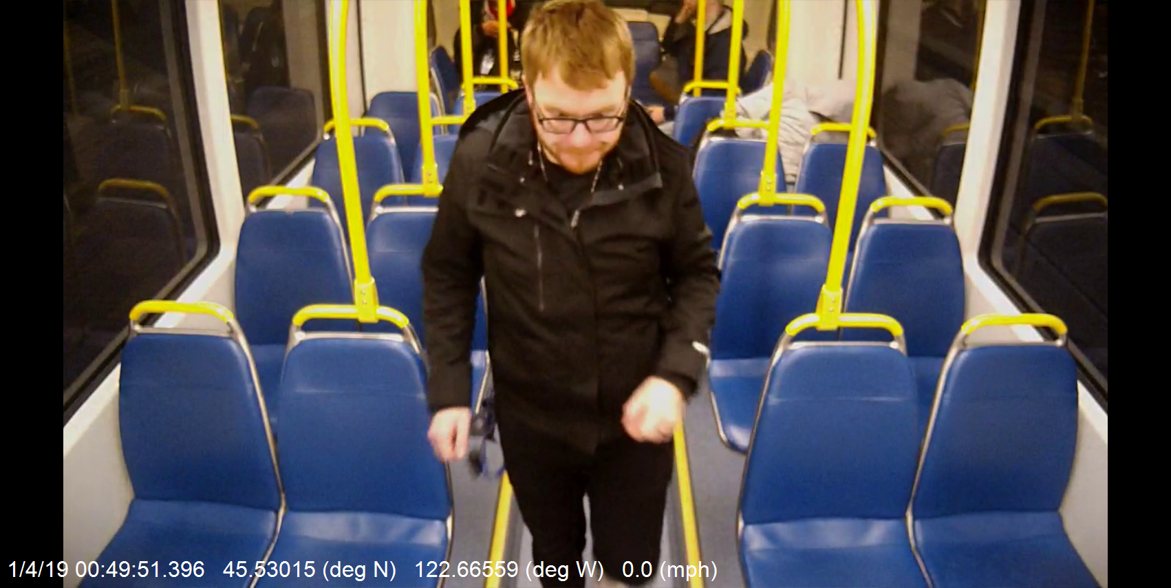 On 01/04/19 at approximately 12:49 am the photographed suspect vandalized and stole a TriMet camera from the Rose Quarter Transit Center.