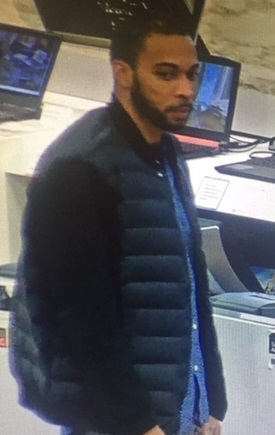 The suspect is described as a Black male in his 20s or 30s, tall, thin, with short hair and facial hair.