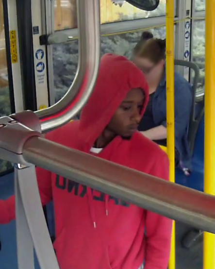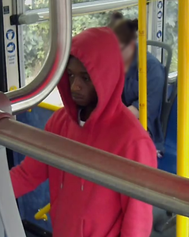 On 7/7/17 at around 1030 hours, the subject in the red hooded sweatshirt stole a purse from a lady on the bus near SE Holgate and SE 108. He has a nose piercing on the left side of his nose and a small goatee on his chin.