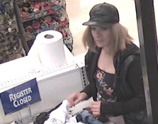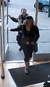 Please help to identify this male and female. The female suspect used a credit card stolen in car prowl to purchase items at several locations downtown.