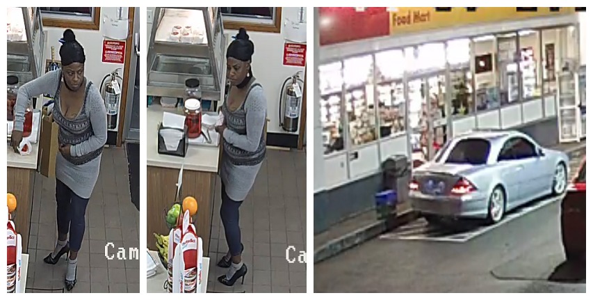 The suspect fled the area in this silver Mercedes Benz.