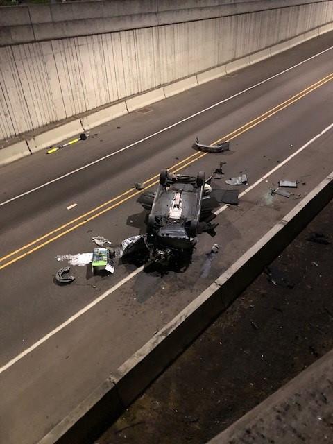 On Saturday, August 12, 2023, at 2:21 a.m., officers from the Central Precinct responded to a crash at the west end of the Sellwood Bridge. The single car crash left the car on its roof down on South Macadam Avenue. The driver was taken to an area hospital with life-threatening injuries. There were no other occupants in the car.
