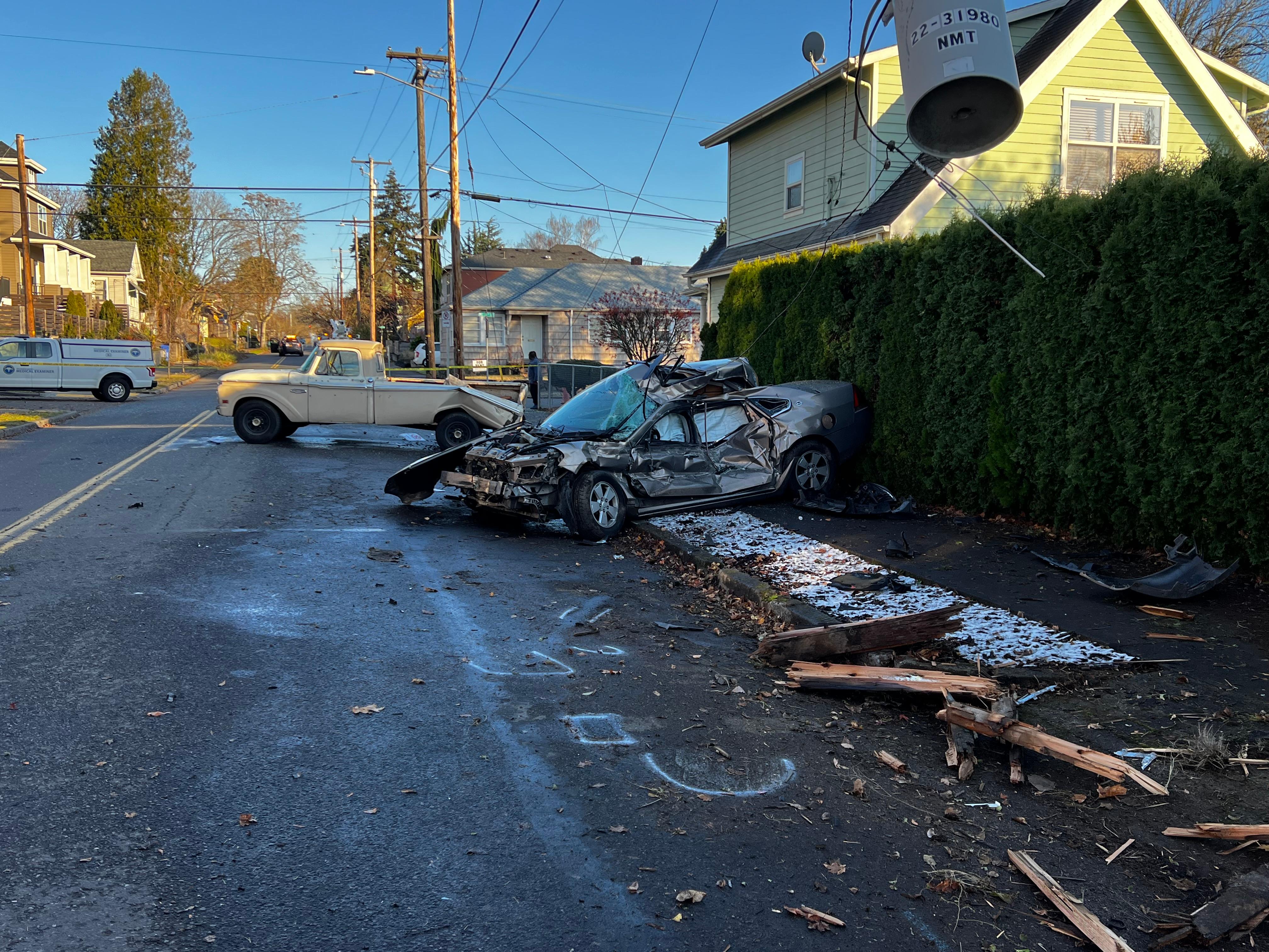 On December 5, 2022, at approximately 12:19 p.m., a 2006 Chevrolet Impala was traveling eastbound on Northeast Prescott Street at Northeast 11th Avenue when it struck a telephone pole and a parked vehicle. The driver did not survive.