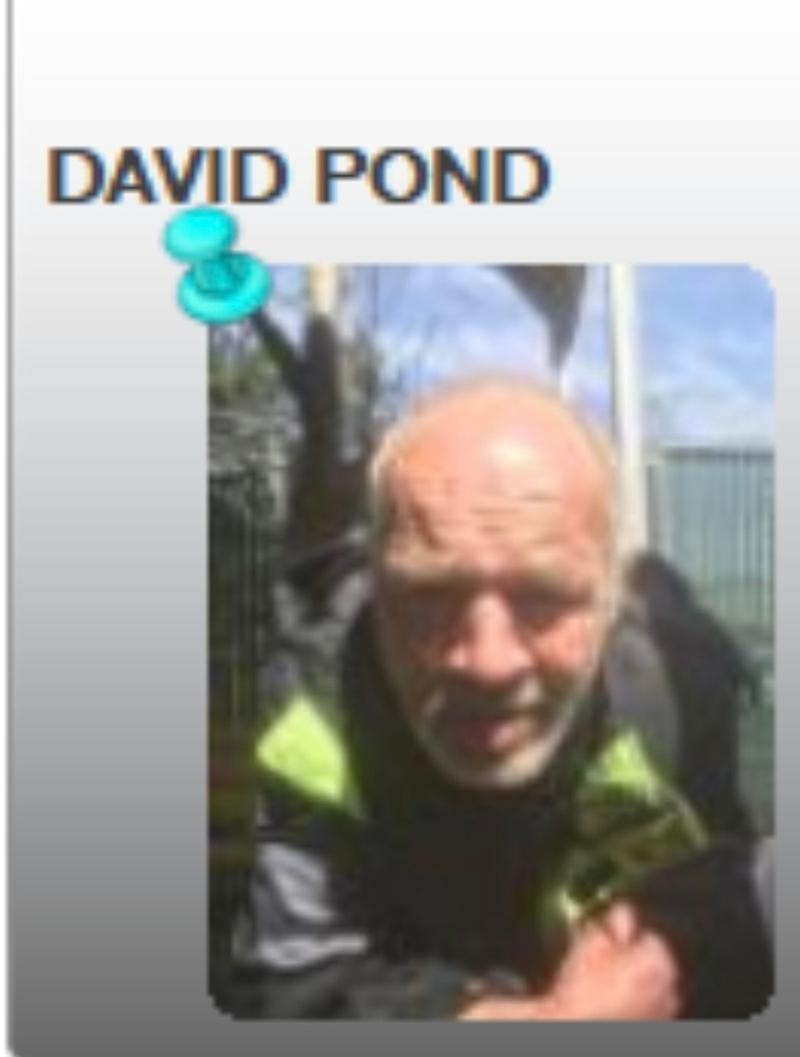 David Pond has not been diagnosed with memory issues. However, he is known pose in various standing positions for extended periods of time. Mr. Pond is 5’7” tall, but walks with an extreme hunch, so his visible height appears to be closer to 5’. He weighs approximately 150lbs and was last seen wearing a long navy-blue pea coat and blue jeans. David Pond has mostly balding white hair and a full beard.