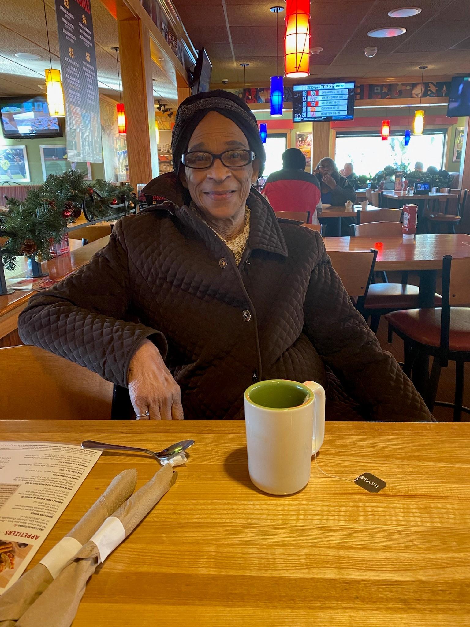 Charlene is African-American female, 5'7" tall, 160 pounds. She does not have her glasses with her as seen in the photo. She is believed to be wearing a black fur hat, black coat, and either black shoes with a pick Nike swoosh or burgundy clogs. She walks slowly and does not utilize any walking aids.