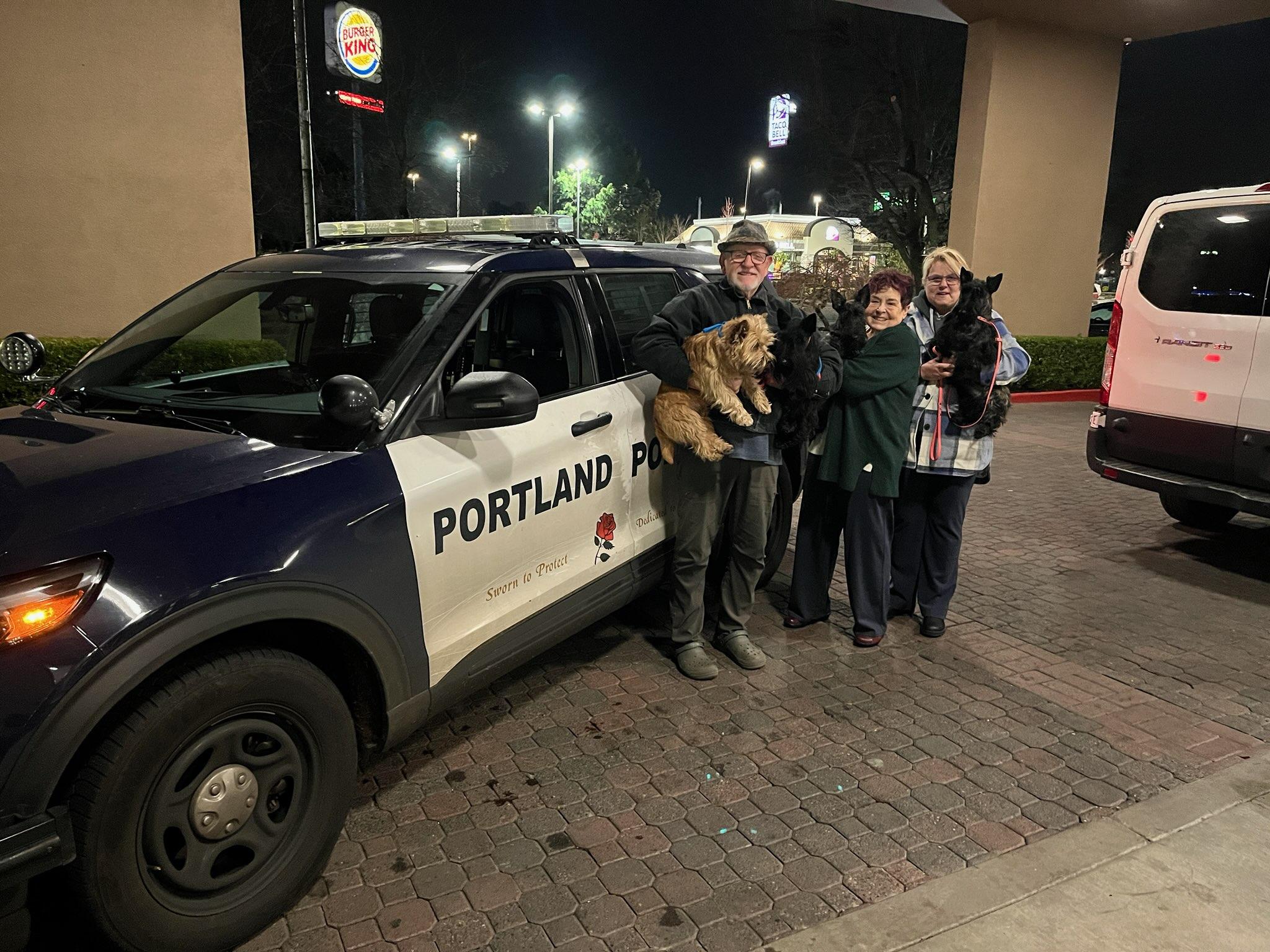 The dogs taken in an earlier incident have been located and returned to their owners. An alert community member in Vancouver, Washington located the dogs in the van after he found it abandoned on the road. PPB assisted with the return of the dogs to Portland.