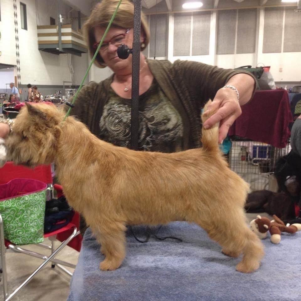 The dogs are 3 Scottish Terriers and 1 Cairn Terrier. All are about 22 lbs. Two are black/brown, one is black, and one is brown.