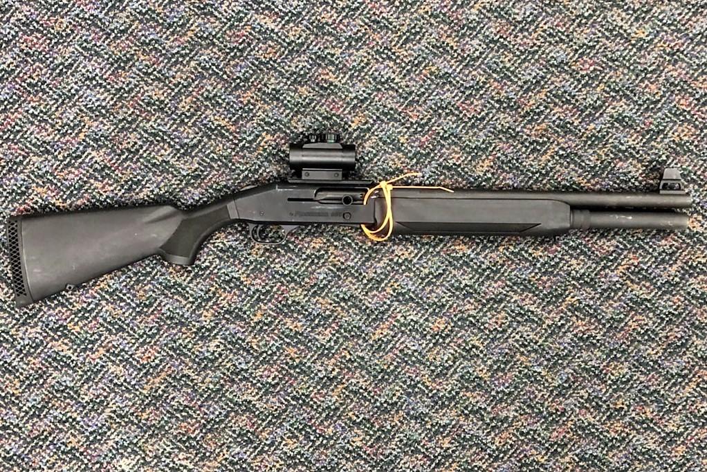 A semi-automatic 12-gauge shotgun was seized as evidence (photo)