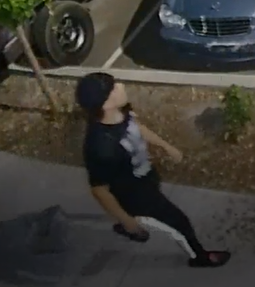 Suspect #1 appears to be a White or Hispanic male, is thin, and is wearing a black beanie, a black long sleeve shirt, black pants and black shoes. He is holding a shiny object that he eventually uses to stab the victim.