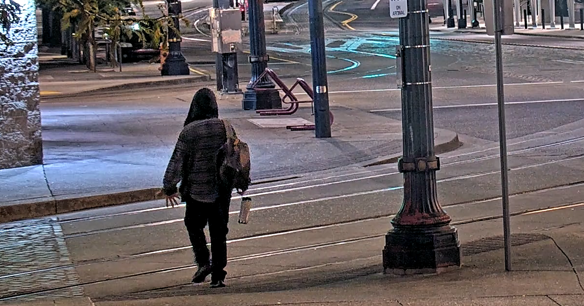 The suspect is described as a white male in his 20s-30s. He was last seen wearing a dark flannel jacket with a black or darker hood, black shirt with a white logo across the chest area, black pants, and carrying a backpack. This release includes still images of the suspect and video of the assault in order to assist potential witnesses who might know the suspect’s identity or whereabouts.