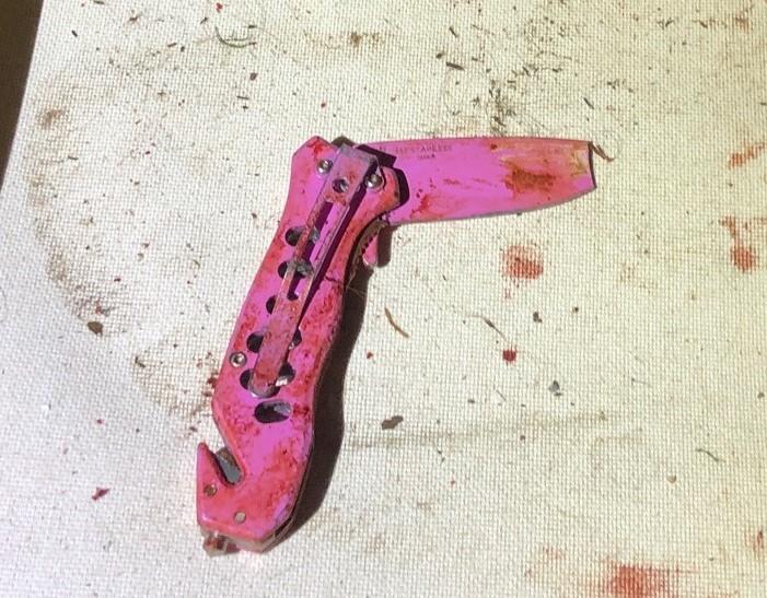 The case involved a domestic relationship between the suspect and the female victim. The Portland Police Special Victims Unit responded to investigate the assault. They recovered a knife as evidence (photo). They also recovered brass knuckles believed to have also been used in the assault on the female and the police sergeant.