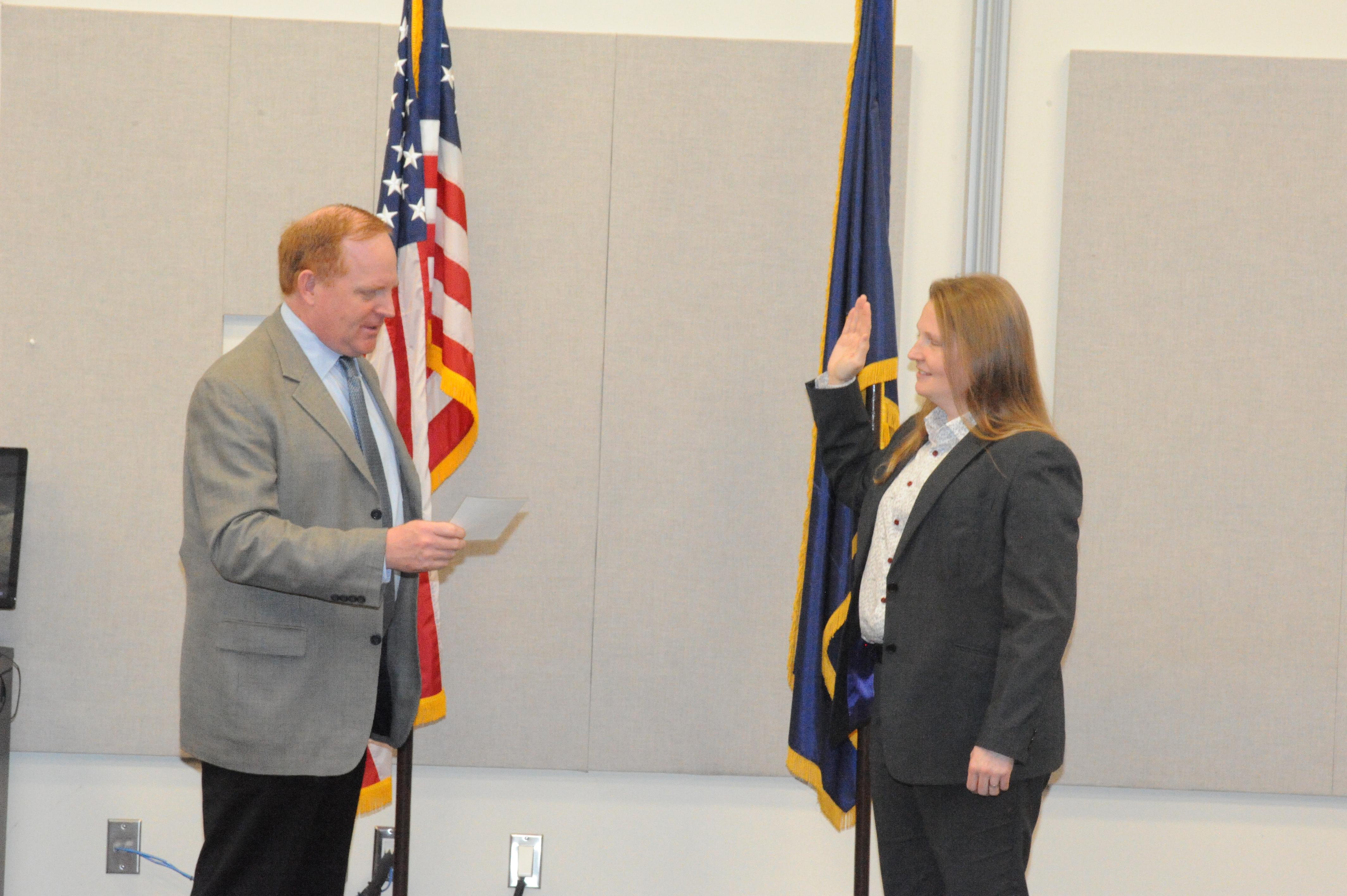1-Assistant Chief McMillan, right hand raised, is sworn in by Chief Bob Day